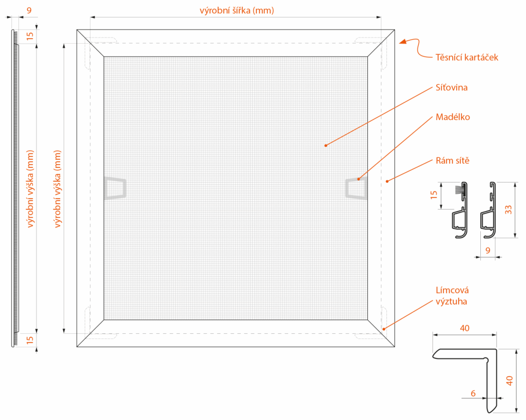 Konstrukce okenní sítě SEL LUX